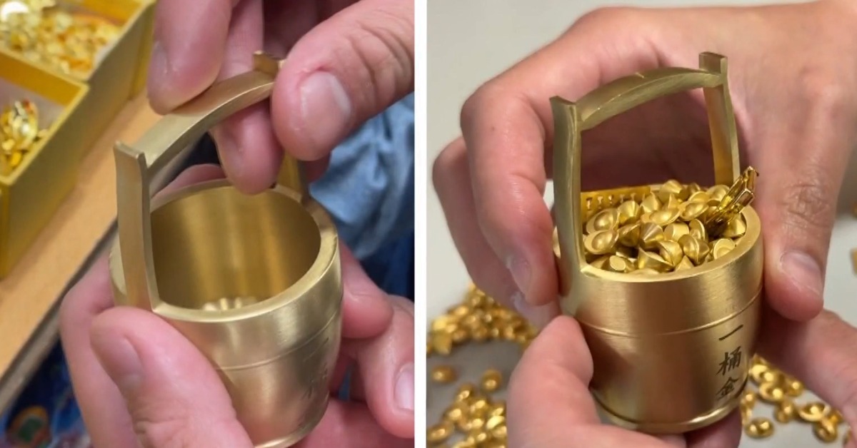 南投竹山紫南宮不只錢母很搶手,最近附近店家還流行賣起第一桶金,不過每家價格不一,有民眾花750元買一個空桶,小配件還要另外選購,光是空桶價格從250到500元都有,也有其他店推出套組,價格則是600到800元不等,落差很大。拍賣平台一桶金只要兩百多元,價格相當紛亂。