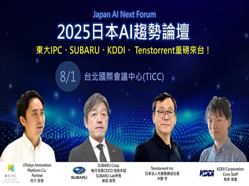 為了讓台灣AI產業相關人士,聚焦AI在半導體、汽車、生成式AI等關鍵領域,了解來自日本的AI創新動能與產業趨勢,8月1日上午舉辦的「2025日本AI趨勢論壇」(2025 Japan AI Next Forum),邀請來自東京大學IPC、Tenstorrent、SUBARU與KDDI等日本重量級代表,分享最新AI研發成果與跨國合作實例,全面揭示AI如何驅動企業轉型與產業升級,深入探討AI驅動的未來圖像,讓與會來賓立即掌握日本產業動向與合作契機。