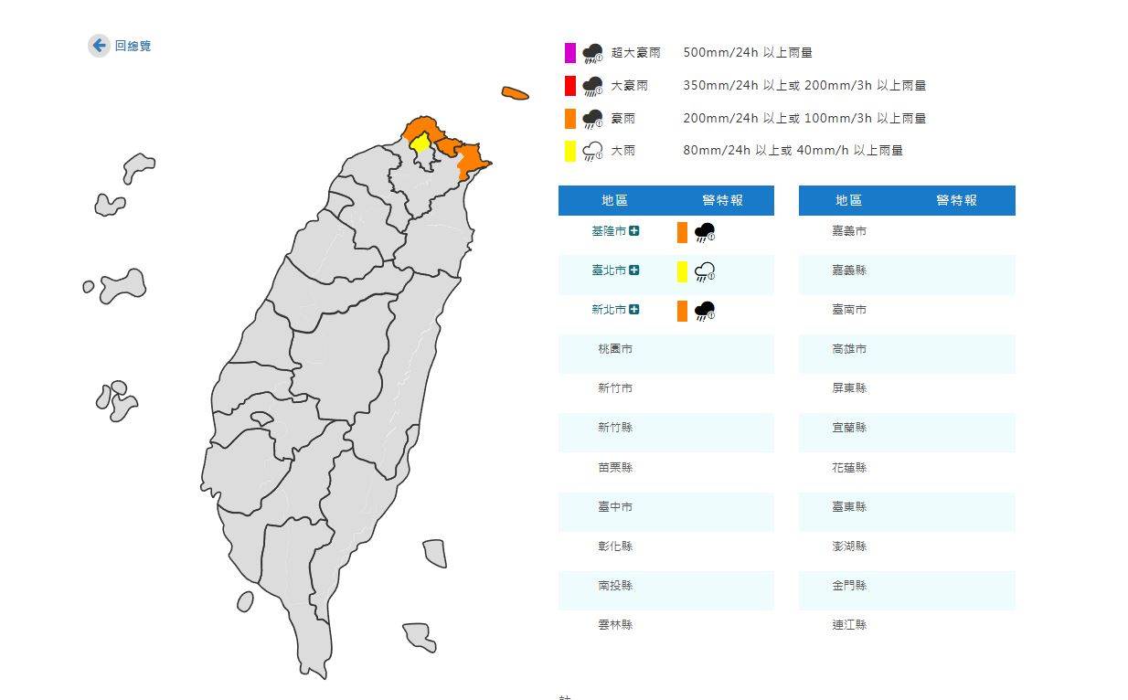豪雨特報、大雨特報警戒區有哪些縣市?