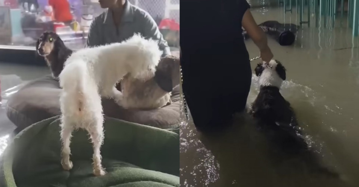 從飛翔蜜境分享的1分54秒影片內容,可以看到較為小型的犬隻被放在墊子上,看起來相當驚慌失措,園區主人只能拉著墊子,讓牠們漂在水上移動,較大型的犬隻則是被主人拉著項圈,舉步艱難地涉水逃難,看起來相當艱辛,好在最後園內的犬貓們都順利到高處避難,不過園區的物品全都泡水,需要相當程度的金額及時間恢復原狀。