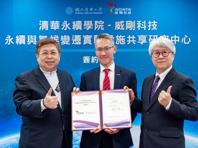 因應全球氣候變遷與淨零轉型的迫切挑戰,威剛與國立清華大學永續學院於昨(20)日舉行深度產學合作簽約儀式。在清華大學校長高為元見證下,由威剛科技董事長陳立白與清華大學永續學院院長范建得代表雙方正式簽署合作合約,宣布於清華大學校內成立「威剛永續與氣候變遷研究中心」,共同推動永續與氣候治理相關研究與實務應用。
