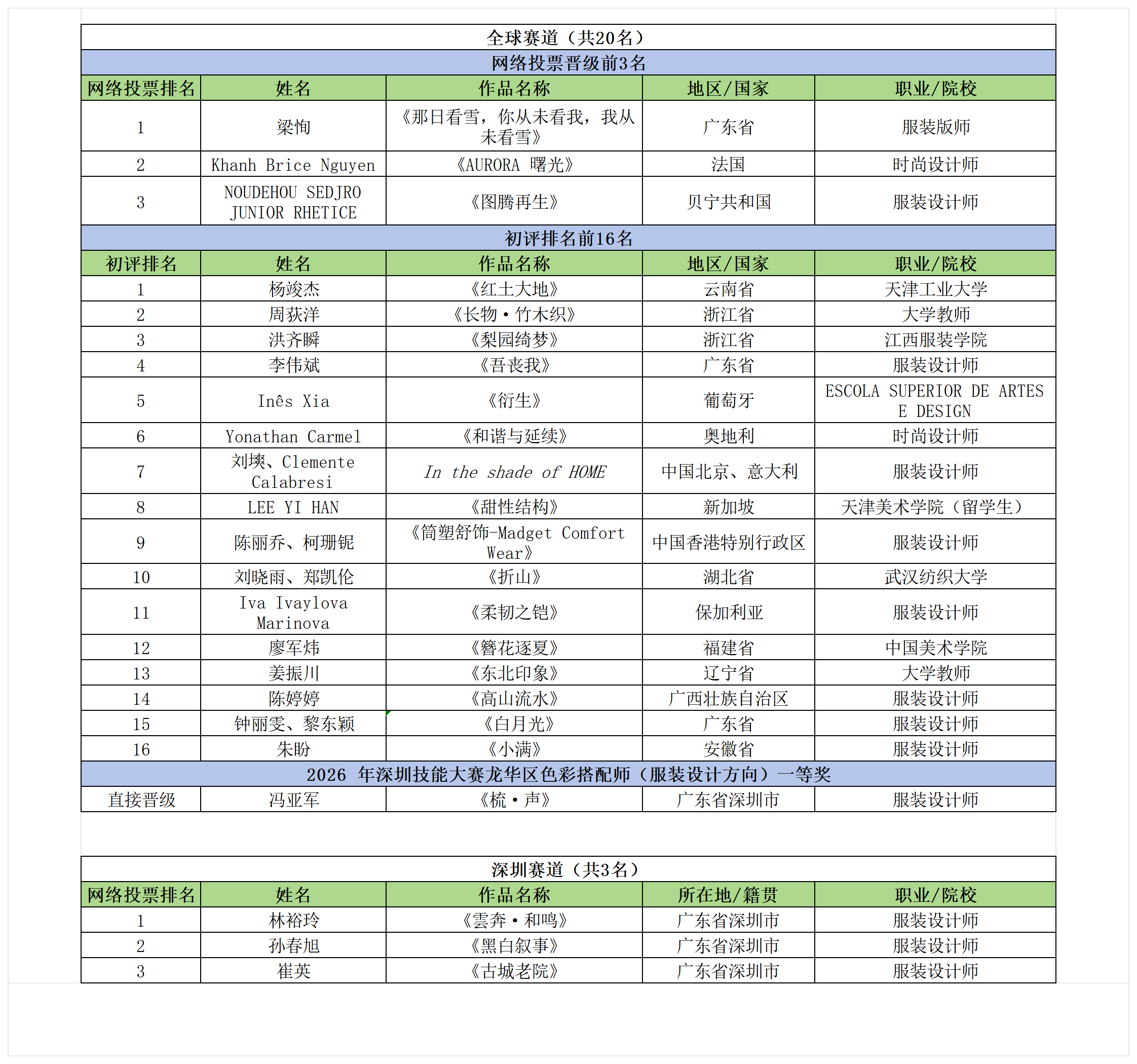 “和鳴# 東方”第十五屆“大浪杯”中國女裝設計大賽經過專業評審團的初評、網路投票及全網公示階段,最終全球賽道和深圳賽道共23份優秀作品從近2000份投稿中突出重圍,進入成衣製作階段。