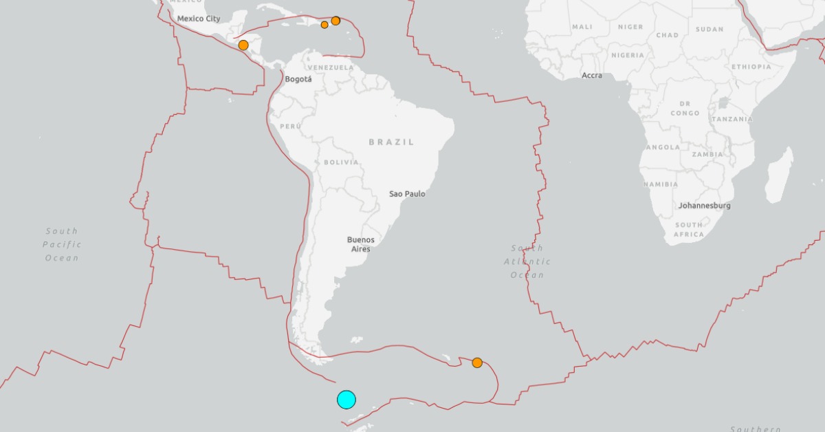 南美洲德雷克海峽發生規模7.8強震 引發海嘯警報 太平洋海嘯警報中心(Pacific Tsunami Warning Center)今天指出,南美洲德雷克海峽(Drake Passage)遭規模7.8強震侵襲。 10-11